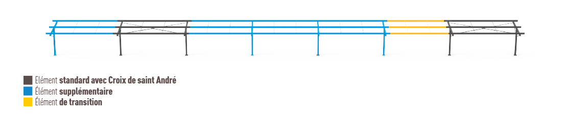 Exemple de configuration : une ombrière simple sur 52,5 m linéaires, correspondant à 21 places de parking